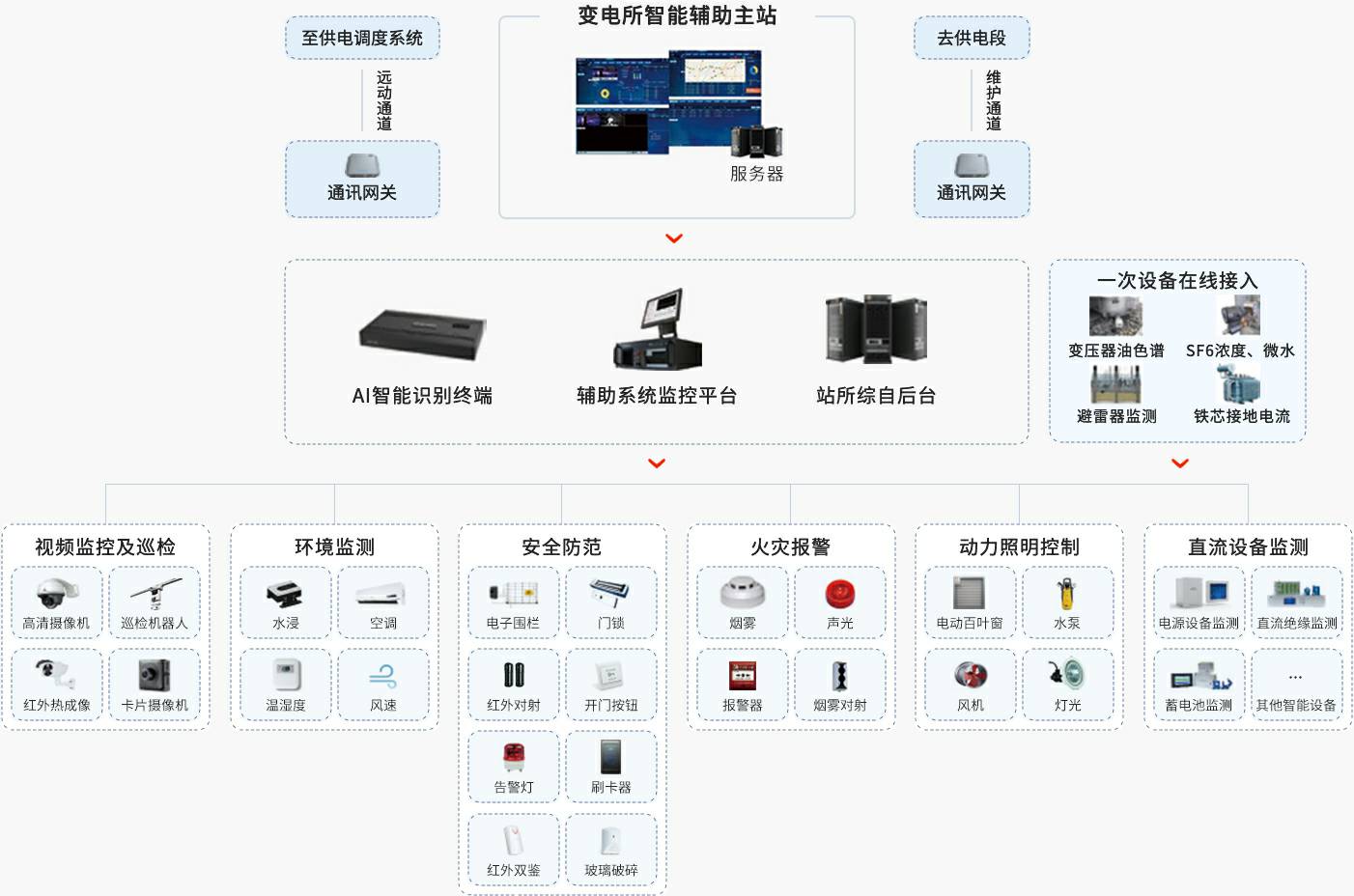 系统支持辅助设备之间的智能联动应答,实现所内环境、安防、消防等状态的自动调节与告警预处理,提升配电所异常情况下的智能化紧急处理能力,确保室内设备运行在适宜、安全的环境中。